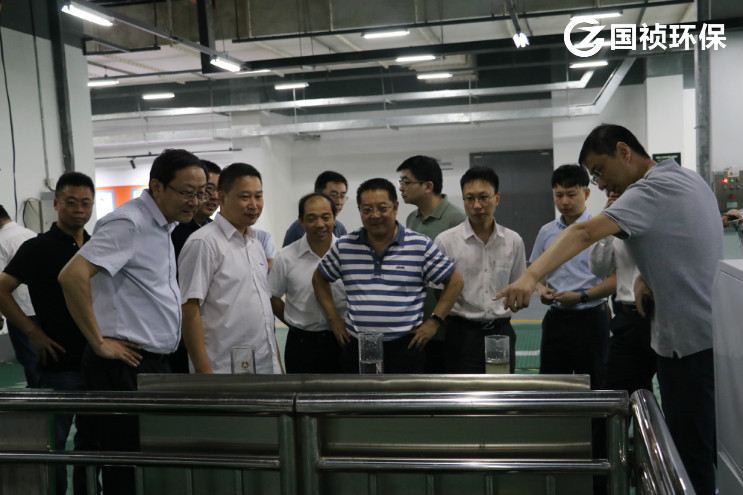 王世平總經(jīng)理一行首先參觀了國(guó)禎環(huán)保清溪凈水廠,了解清溪廠處理工藝、運(yùn)營(yíng)模式,并實(shí)地查看出水口水質(zhì),對(duì)國(guó)禎環(huán)保的專業(yè)能力表示高度肯定。