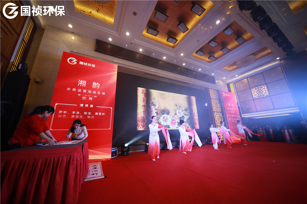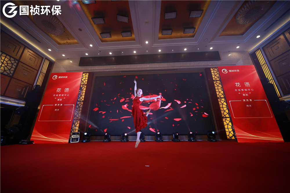 頒獎(jiǎng)典禮也穿插了很多表演節(jié)目。貝斯、打碟、神曲……什么流行來什么,怎么專業(yè)怎么玩!一則《熱舞串燒》迅速點(diǎn)燃?xì)夥??!断骓崱非擅顚⒗收b、書法、舞蹈、獨(dú)唱合為一體,《花語》《家鄉(xiāng)美》《九九女兒紅》等演員舞姿曼妙,《平凡之路》《成都》《海闊天空》《友誼之光》等歌曲余音繞梁、悅耳動(dòng)聽,詩朗誦《麥王傳情、光耀大地》情感熱烈飽滿;手語表演《夜空中最亮的星》向所有獻(xiàn)身環(huán)保公益事業(yè)的人致敬;《不差錢》《辯論賽》《國禎好聲音》等語言類節(jié)目包袱滿滿,讓宴會(huì)廳充滿歡聲笑語。《國禎新聞聯(lián)播》作為唯一一個(gè)連續(xù)四屆登上“國禎春晚舞臺(tái)”的小品,每年都說“再也沒有下一屆”,可每年都上演大型“真香”現(xiàn)場?!都状笕酥┰健分忻枥L國禎環(huán)保項(xiàng)目的詩文竟然是全部出自公司副總經(jīng)理、水環(huán)境治理事業(yè)部總經(jīng)理王立余之手,真是才華橫溢、滿腹經(jīng)綸。由C位出道、超人氣男團(tuán)“國禎F6”傾全力打造的《中年陣線聯(lián)盟》節(jié)目引得大家歡呼不斷、鼓掌不停,觀眾宛如新聞發(fā)布會(huì)記者,恨不得將整段節(jié)目一秒不差全都記錄下來,現(xiàn)場熱鬧氣氛也達(dá)到了高潮,頒獎(jiǎng)典禮最終在《我愛你國禎》的高亢優(yōu)美女高音中落下帷幕。